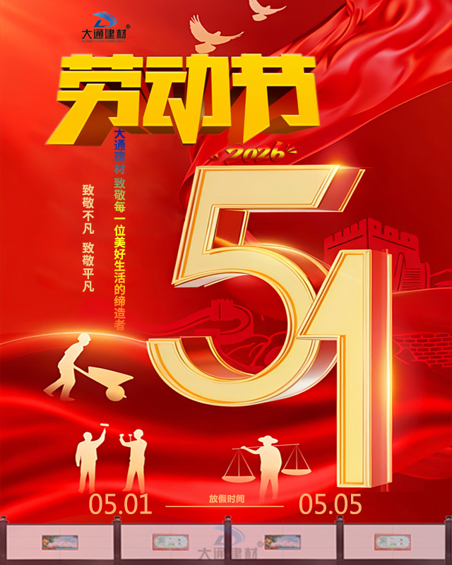 當(dāng)前位置:首頁>文章中心>公司新聞資訊圍擋>深圳市大通建材有限公司2026年“5.1 勞動節(jié)”放假通知
